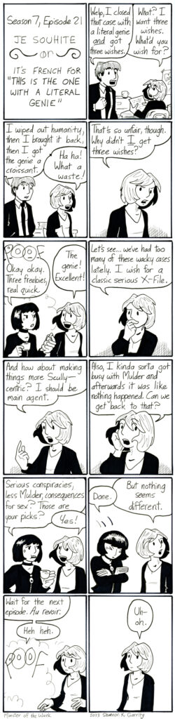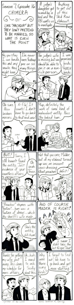 Yeah, so in this episode Scully sleeps with Mulder, and then they go on like nothing even happened. This show sometimes, I swear.