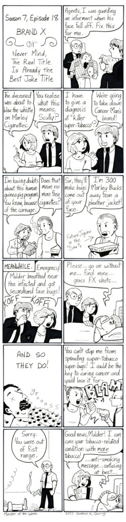 In addition to some good silly gags, this episode has that special effect from “The Matrix” where a guy’s mouth disappears. I always find that very disturbing.